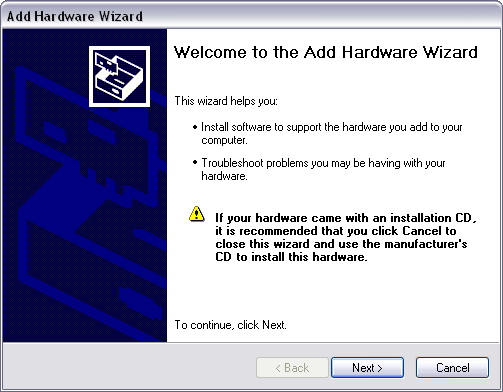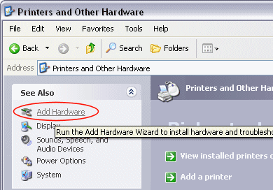 - Clicking the Add Hardware link launches the Add Hardware Wizard.
