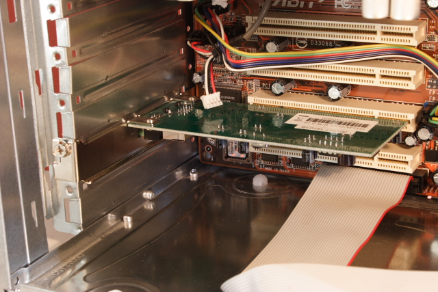 - Insert the Network Card into the slot in the mainboard. Cards can only be inserted one way because there is a plastic piece that matches a gap in the gold contacts. Press the card in firmly, but don't break the mainboard by pressing too hard.