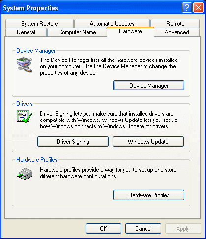 - Click the Hardware tab. The Hardware control panel sheet will be displayed: