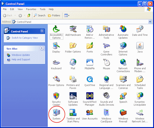 - Double-Click the System control panel icon