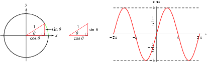 Electromagnetic waves are frequently represented mathematically using a sine wave on a cartesian graph (graph with the red wavy line below). A sine wave begins with a high value at the origin (where the X and sin X cross in the graph below), rises, falls and then returns the X axis. This single sine cycle is said to pass through 360 degrees of phase. When represented on a polar-rectal graph, you get a circle (360 degrees). In polar rectal coordinates, the values are a distance from the origin plus an angle from 0 degrees.